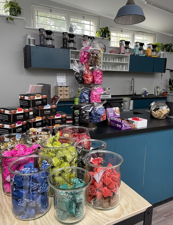 Auch haben wir ein großzügiges Angebot an lokalen Berliner Produkten (z. B. Ohde-Marzipan aus Neukölln, Zimt & Pfeffer aus Mitte) Feinkost (Honig aus Spanien, Olivenöl aus Griechenland) und edlen belgischen, italienischen oder schwedischen Schokoladen und Pralinen. und auch für Lakritze-Liebhaber haben wir das ein oder andere zu bieten. Schauen Sie gerne bei uns vorbei und probieren die Köstlichkeiten bei einer Tasse Kaffee!